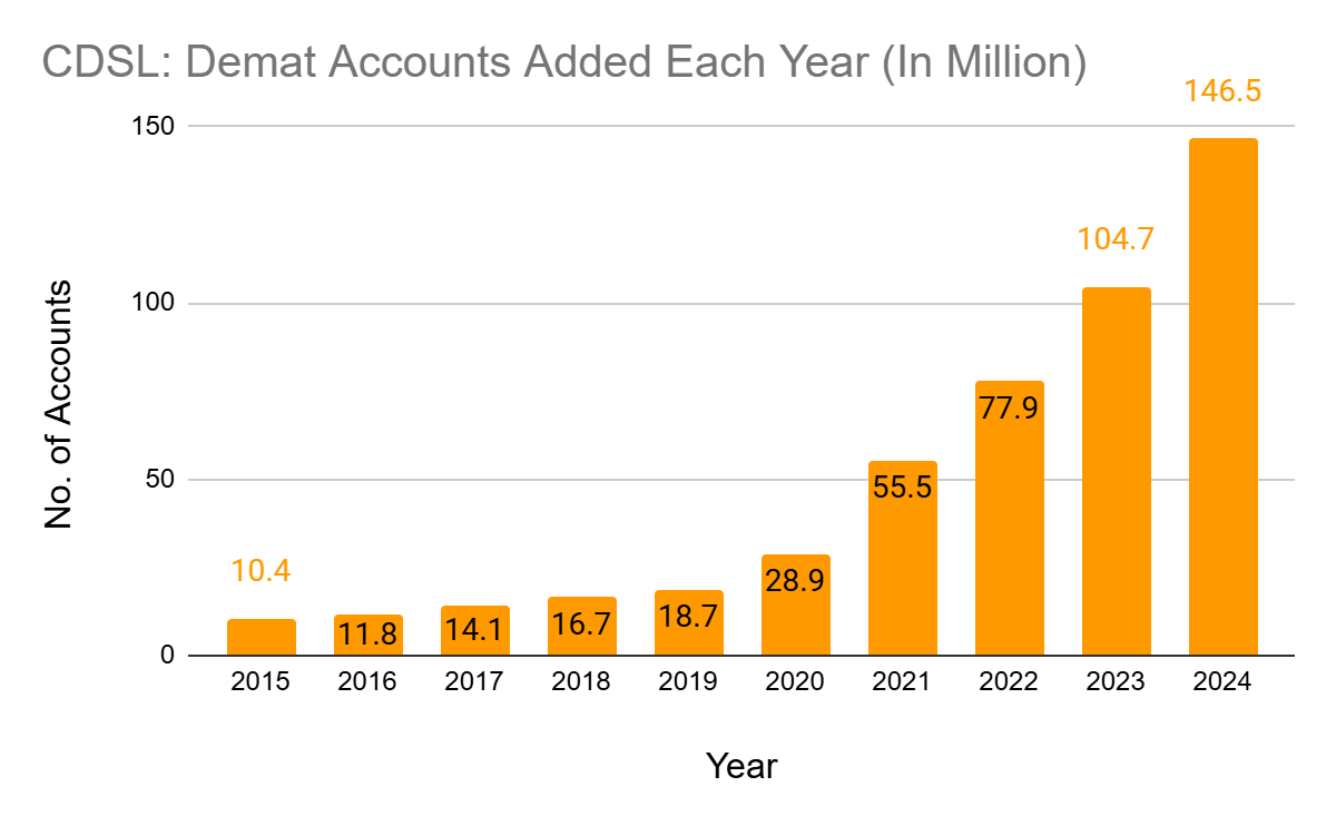This surge in demat accounts was driven by easier account opening, rising smartphone usage, and strong market returns.