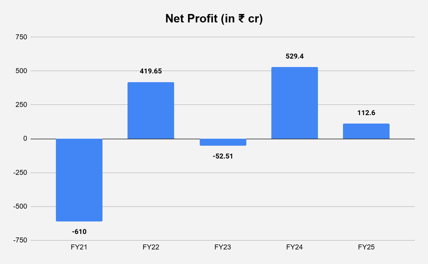 The net profitability of the company has been inconsistent over the years. In FY25, HCC’s net profit declined 78.7% to ₹112.6 crores from ₹529.4 crores.
