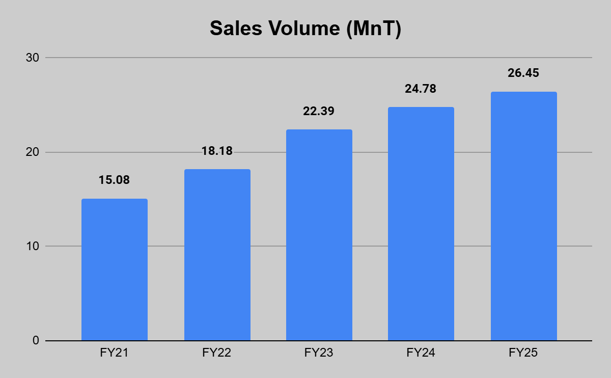 In Q1FY26, the company’s revenue from operations increased marginally to ₹43,147 crores from ₹42,943 crores. Total sales volumes during the quarter were at 6.69 MT, up 9% YoY.