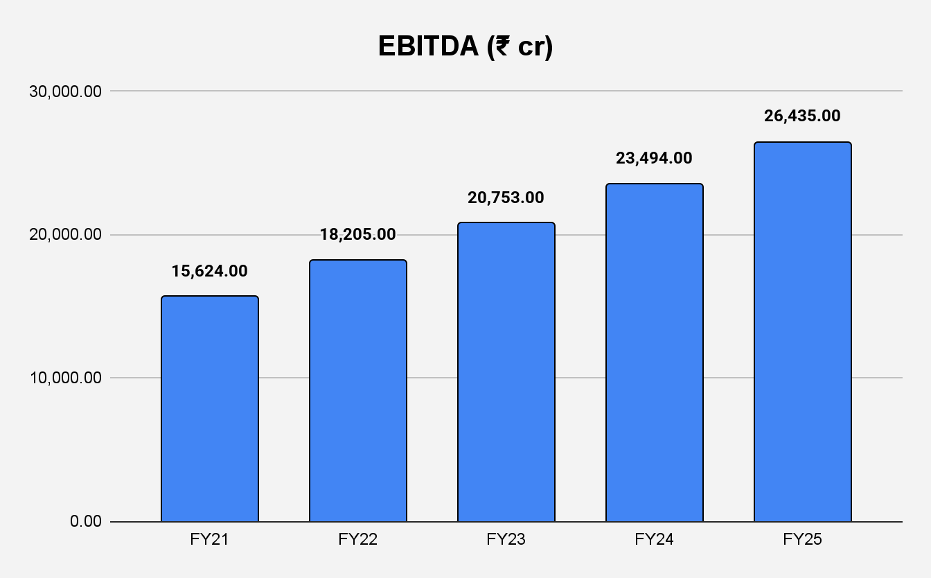L&T’s EBITDA increased by 13% year-on-year to ₹26,435 crores in FY25, from ₹23,494 crores in FY24.