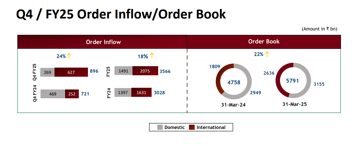 This resulted in a total order book of ₹5.8 lakh crore in FY25, up from ₹4.76 lakh crore in FY24. With a strong order book, it gives a multi-year revenue visibility.