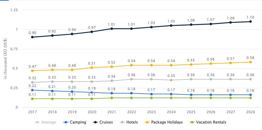 According to Statista, the Travel and tourism market is set to see a significant revenue increase worldwide. By 2024, revenue is expected to reach US$927.30 billion, with an annual growth rate of 3.47%, resulting in a market volume of US$1063 billion by 2028. The Hotels market, the largest within Travel and tourism, is projected to reach a market volume of US$446.50 billion in 2024.