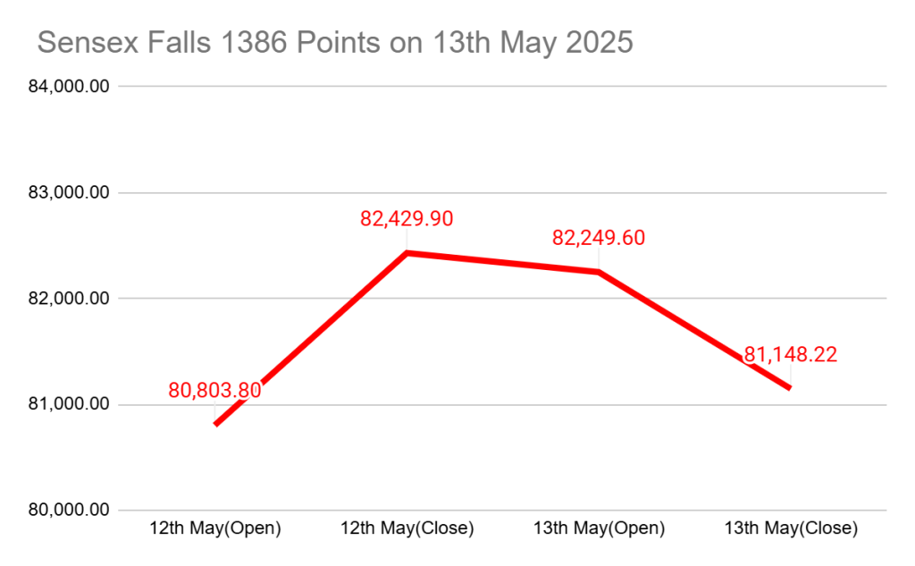 Monday’s rally was driven by a wave of positive developments, including a ceasefire between India and Pakistan and optimism around a potential US-China trade deal, which significantly boosted investor sentiment. However, this momentum proved short-lived. On Tuesday, the markets saw a sharp correction. The Sensex plunged 1,386 points (1.7%) during the session to hit an intraday low of 81,043.69, while the Nifty 50 dropped 377 points (1.5%) to an intraday low of 24,547.50.
