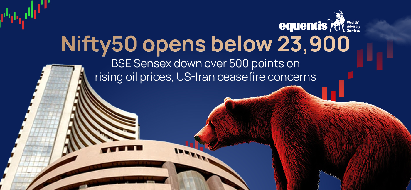 The Indian stock market started the day on a weak note, with the Nifty50 opening below 23,900 and the BSE Sensex dropping over 500 points. The key trigger behind this decline is the sharp rise in global oil prices, coupled with uncertainty surrounding a potential US-Iran tensions ceasefire situation. These global factors have increased market volatility, leading to cautious investor sentiment and selling pressure across sectors.