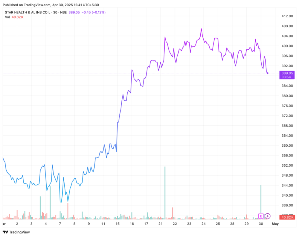 India’s largest standalone health insurer, Star Health and Allied Insurance Co. Ltd., saw its shares fall by 4% on April 30, after posting a staggering 99.7% drop in net profit for the fourth quarter of FY25. The stock, trading at ₹384.7, is now down over 57% from its IPO price of ₹900, highlighting investor concerns amid rising claims and underwriting losses, despite broader annual growth figures. (Source: www.cnbctv18.com)