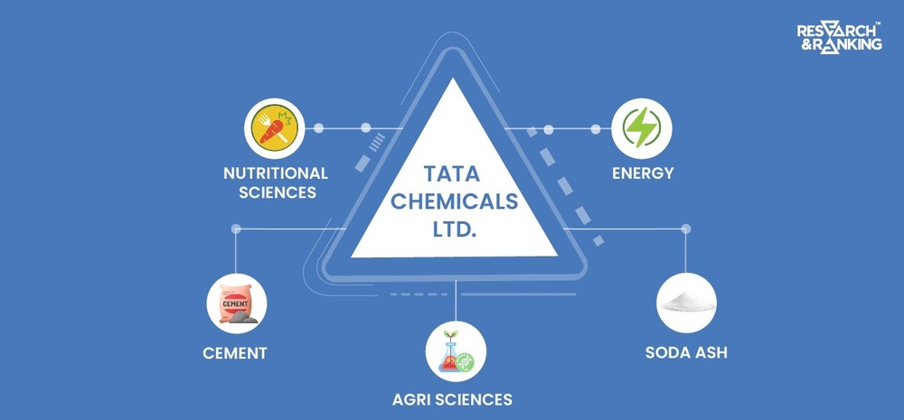 Tata Chemicals produces Soda Ash and Sodium Bicarbonate, primarily used in making soaps, detergents, glass, solar glass, etc. Its other specialty products segment includes specialty silica, prebiotics, agri-inputs, and material sciences. Tata Chemicals is the brand owner of iconic Tata Salt.