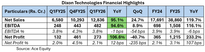 Following the announcement of its Q1FY26 results, Dixon Technologies’ stock rose nearly 3% this morning.